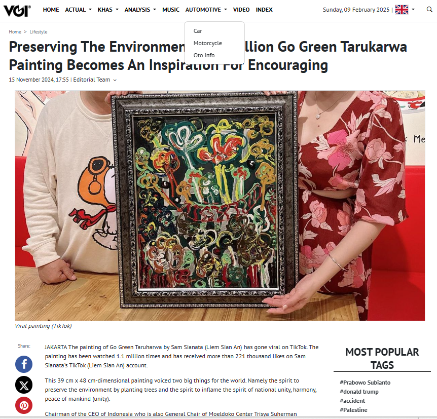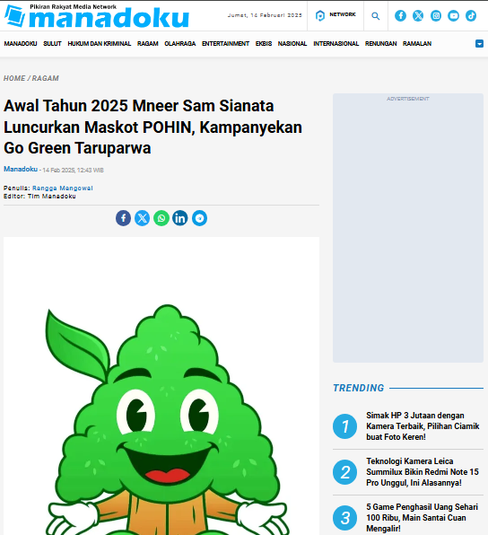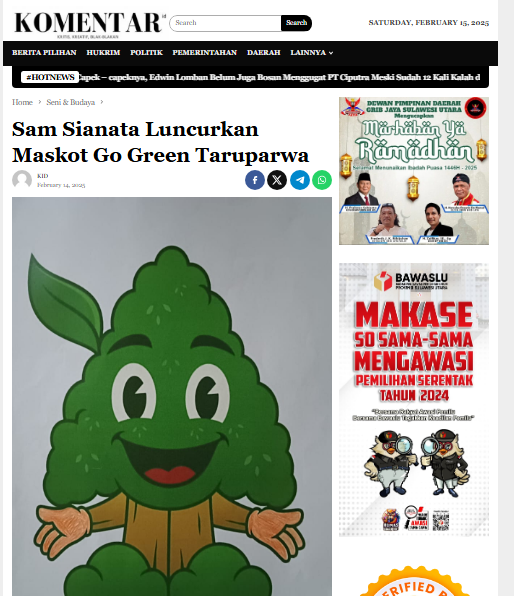 Terus Berkarya Seniman Sam Sianata Luncurkan Maskot Go Green Taruparwa, Karya Lain Cek di www.samsianata.com