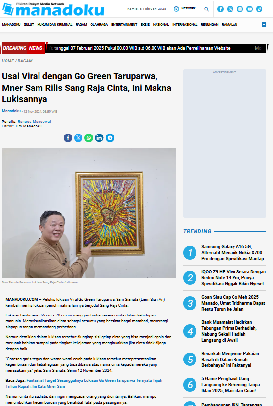 Terus Berkarya Seniman Sam Sianata Luncurkan Maskot Go Green Taruparwa, Karya Lain Cek di www.samsianata.com
